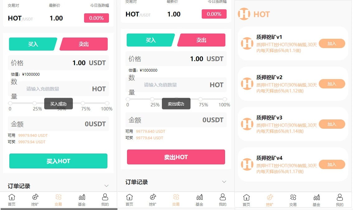 支持质押挖矿,基金购买,代币买入卖出前端是uinapp开发,后端是fastadmin框架,接口是nodejs