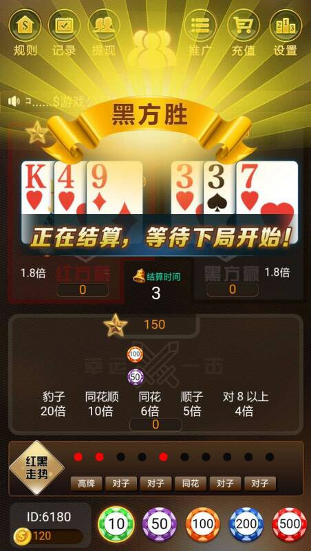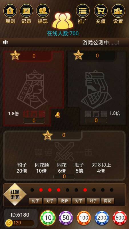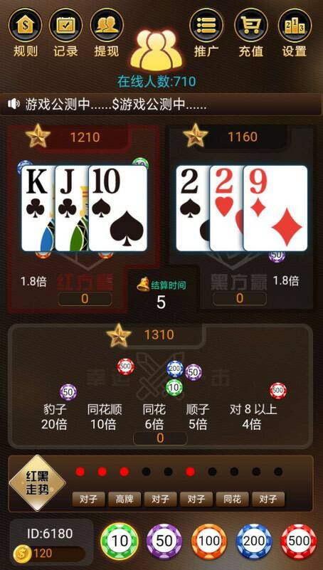 红黑大战经典、牌型比大小、h5游戏 除了比大小,更有特殊牌型下注区域,增加了游戏趣味性。