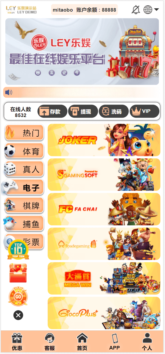 最新乐娱游戏娱乐城API接口/程序源码/精美UI模板/搭建教程 前端是编译后的,后端php,带搭建教程 声明:本站所有文章,如无特殊说明或标注,均为本站原创发布。任何个人或组织,在未征得本站同意时,禁止复制、盗用、采集、发布本站内容到任何网站、书籍等各类媒体平台。如若本站内容侵犯了原著者的合法权益,可联系我们进行处理。