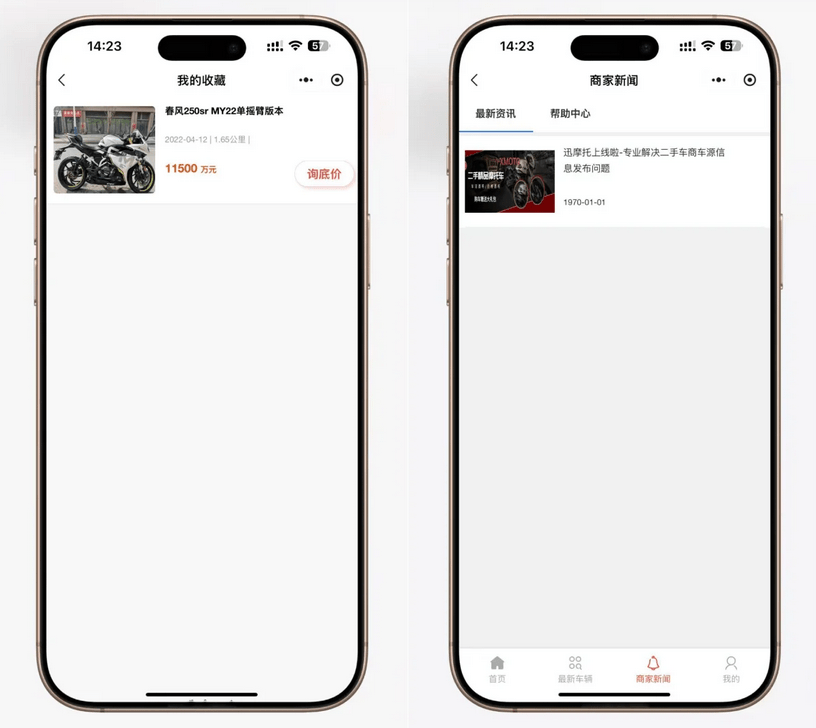 二手摩托车展示小程序源码 声明:本站所有文章,如无特殊说明或标注,均为本站原创发布。任何个人或组织,在未征得本站同意时,禁止复制、盗用、采集、发布本站内容到任何网站、书籍等各类媒体平台。如若本站内容侵犯了原著者的合法权益,可联系我们进行处理。