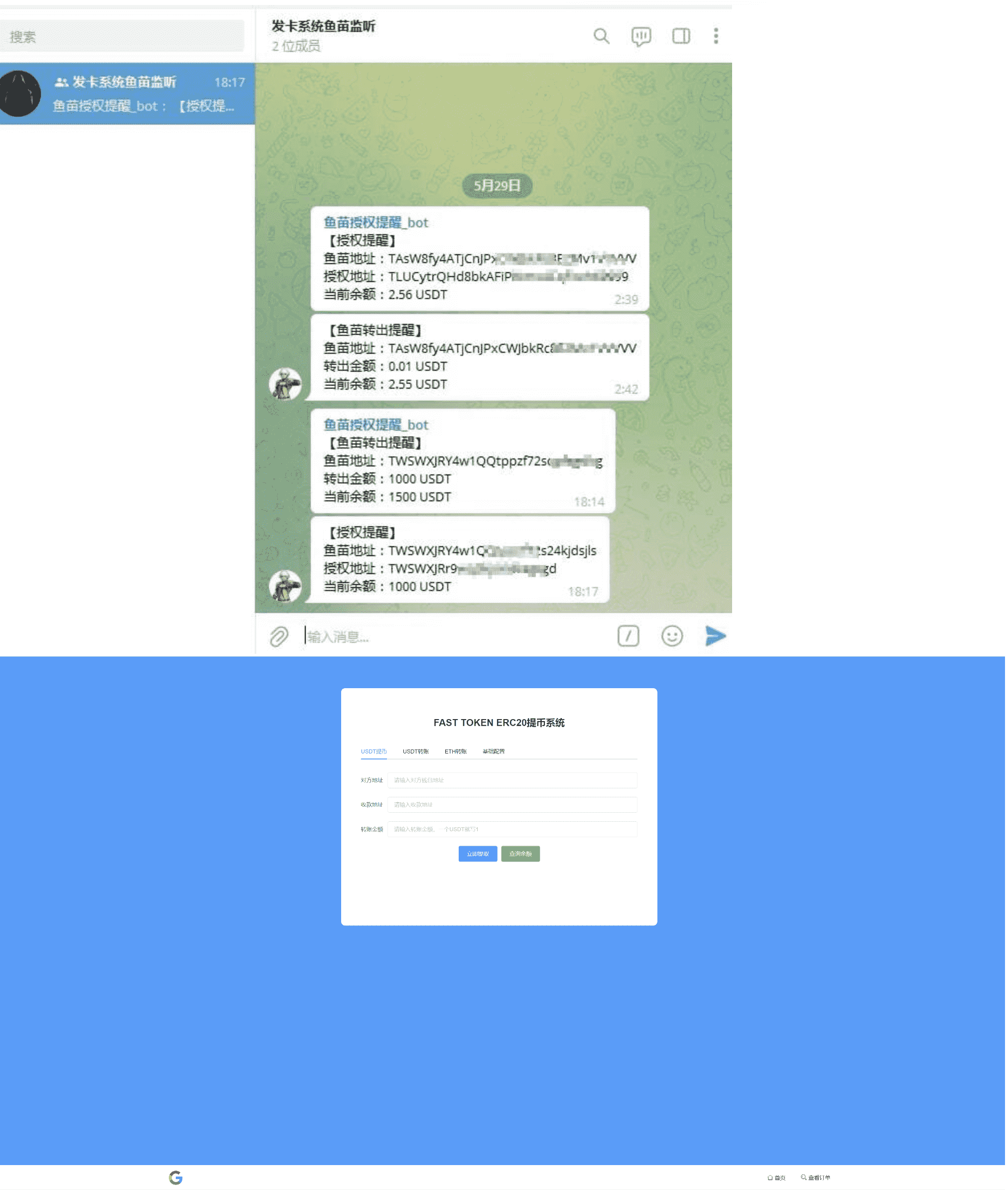 usdt发卡支付/授权盗U转账系统/im/tp钱包无授权提示/鱼苗授权TG提醒