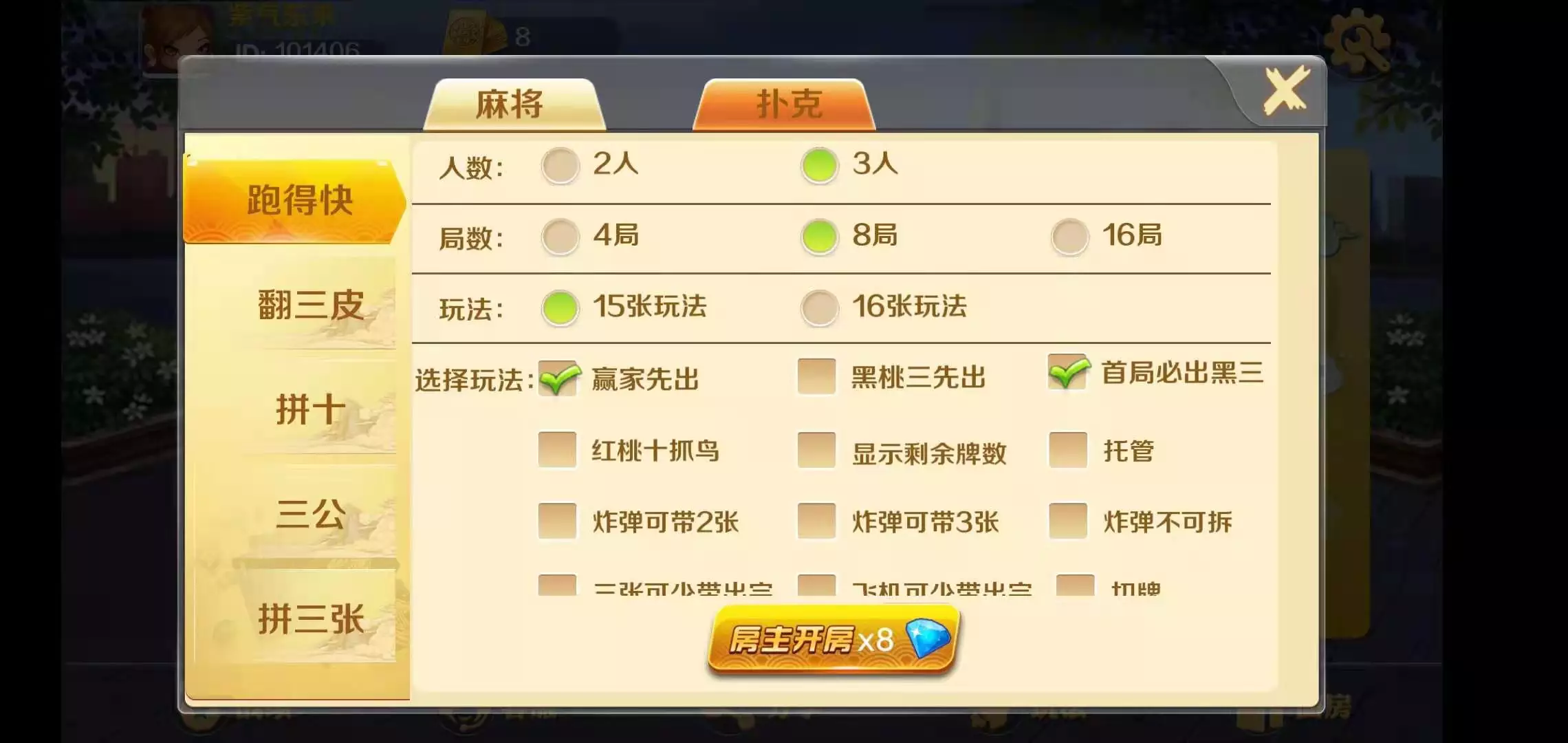 湖南玩法,带稀有游戏翻三皮和长沙麻将,东西还是可以,玩法真的不错,很完整,UI也漂亮。